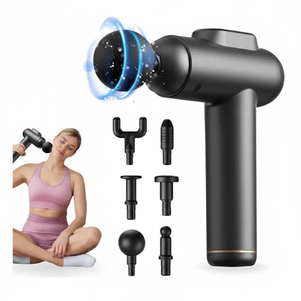Pistola de masaje portátil, ideal para aliviar tensión muscular, reducir la fatiga y acelerar la recuperación.Cuenta con motor silencioso, diseño ergonómico y batería de larga duración, perfecta para uso en casa, gimnasio o viajes.4 colores: Azul, Negro, Gris, Rojo